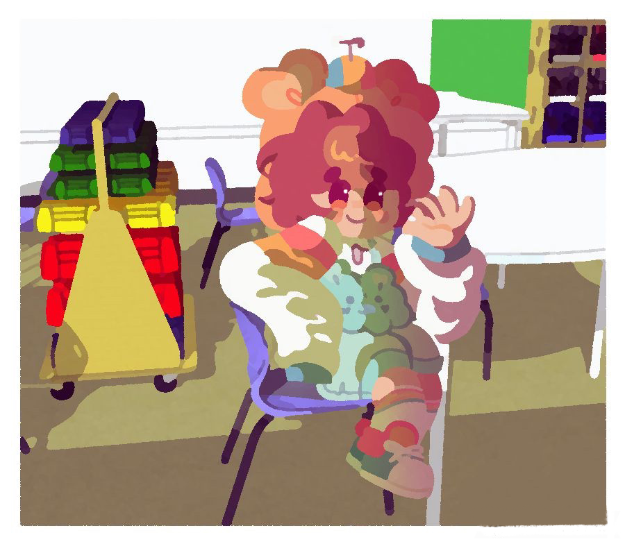 "description": "Mars habging out with a human friend in the future where she feels more comfortable around them.",